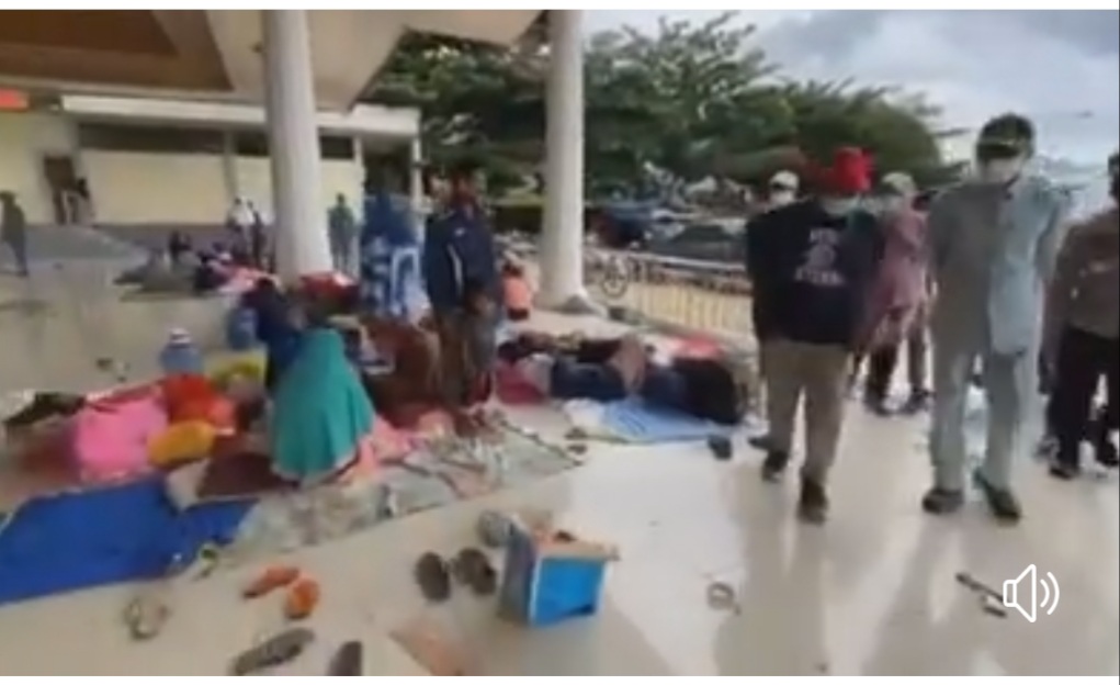 Raditya mengatakan kurang lebih 15.000 orang mengungsi. Terdapat 10 titik pengungsian di Kabupaten Majene dan lima titik pengungsian di Kabupaten Mamuju.