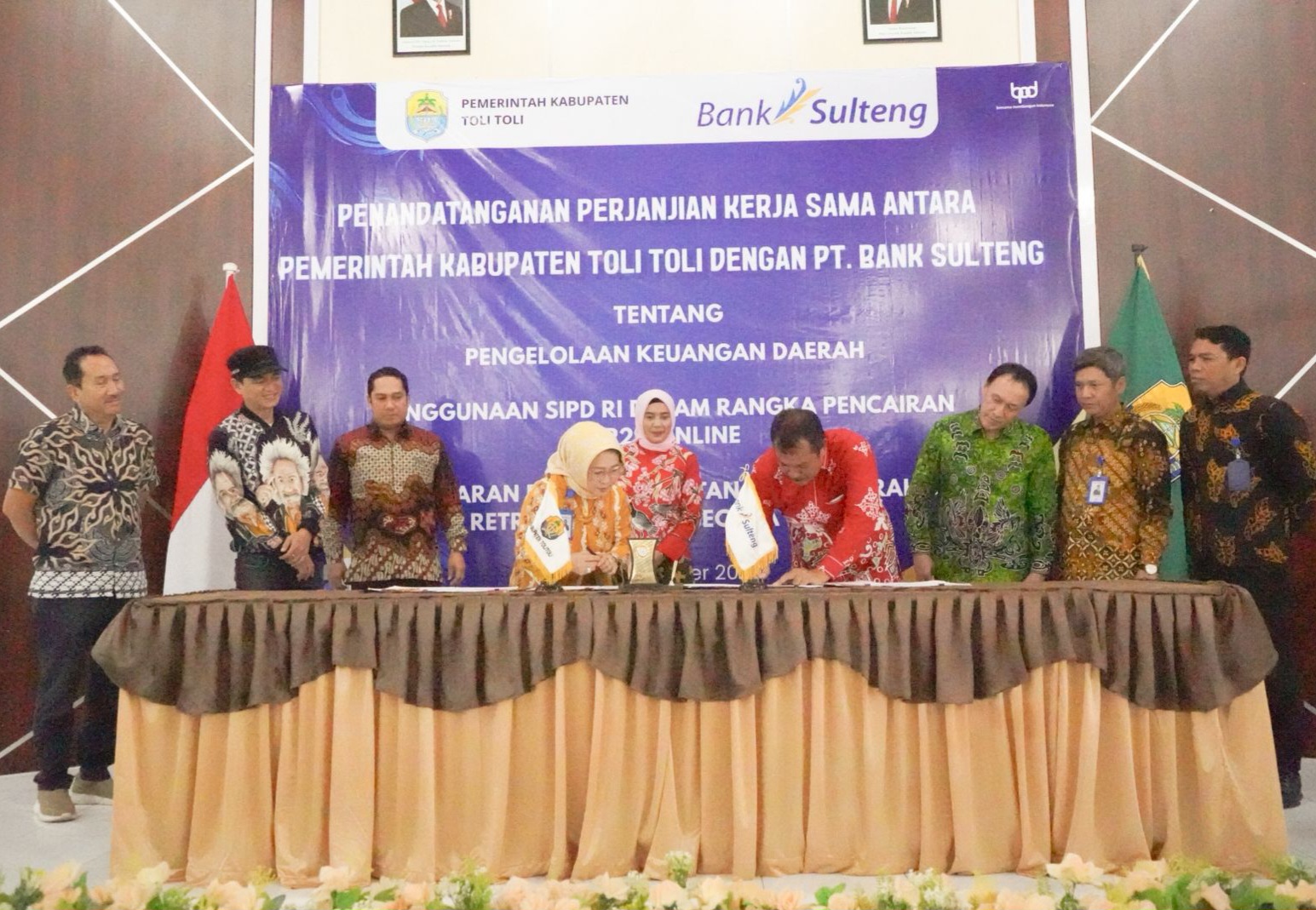 Penandatanganan dilakukan oleh Bupati Tolitoli H.Amran.Hi Yahya bersama Direktur Utama PT. Bank Sulteng Hj. Ramiyatie ini di Tolitoli disaksikan oleh jajaran Forkopimda Tolitoli serta turut di hadiri oleh Komisaris Independen PT. Bank Sulteng Novi Ventje B.Kaligis, Pimpinan Divisi Operasional Muh.Abduh Bunre serta Pimpinan Cabang Tolitoli Mahmud Renden.