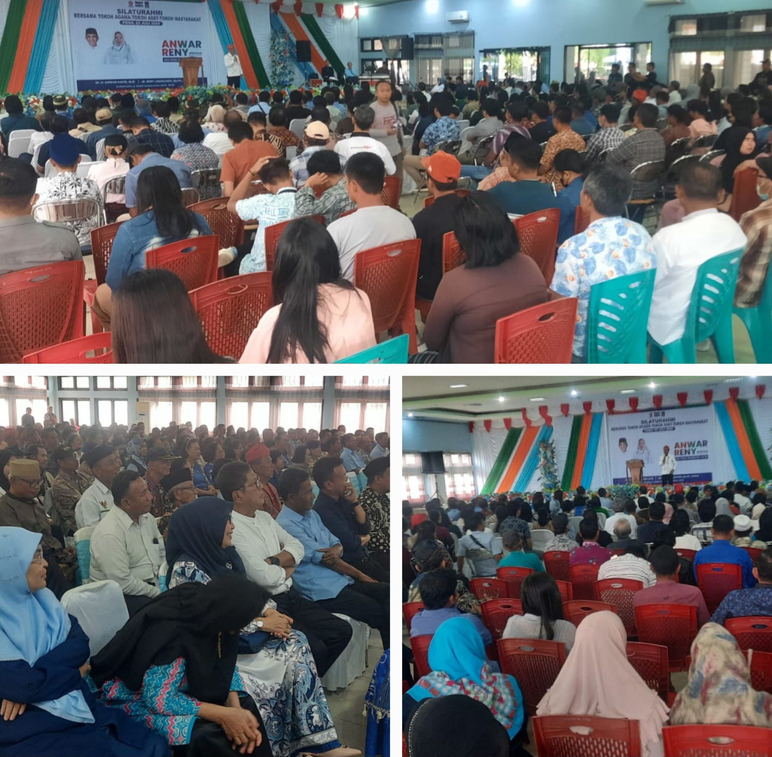 Bang Doel (deadline-news.com)-Poso-Pasangan bakal calon (Balon) Gubernur dan Wakil Gubernur Sulawesi Setengah (Sulteng) 2024 Dr.Anwar Hafid, M.Si – dr.Reny A Lamadjido, M.Kes bersilaturrahmi dengan tokoh Agama Islam, Kristen dan Hidu, toloh Adat, dan tokoh masyarakat Poso di gedung wanita, Poso, Selasa, (23/7-2024).