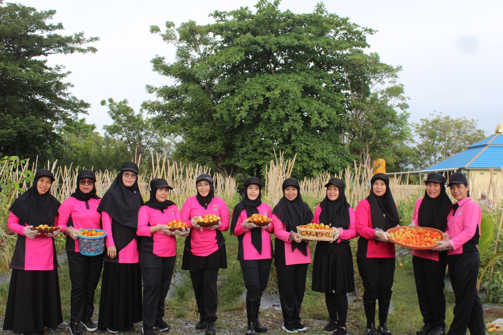 “Dan hari ini kami Bhayangkari sudah melakukan panen perdana untuk tomat dan hasilnya cukup lumayan untuk dibagikan kepada ibu-ibu Bhayangkari dan juga masyarakat sekitar Mako Polairud,”ujar.