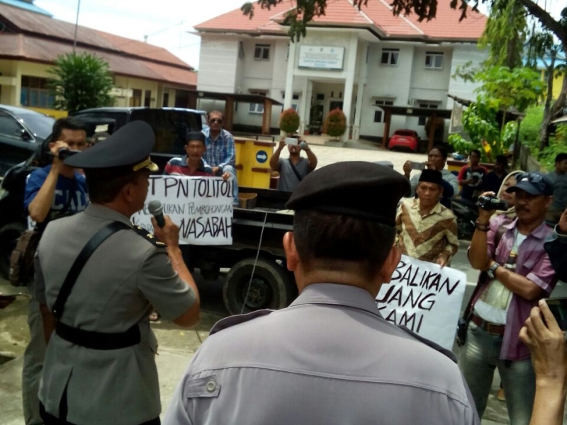 BTPN cabang Kabupaten Tolitoli itu dilaporkan para nasabah tersebut, Rabu (14/2/2018). Sebelum menyampaikan laporannya, terlebih dulu mereka melakukan aksi demo ke Mapolres Tolitoli dengan meminta ke pihak Kapolres agar melakukan pemeriksaan terhadap BTPN itu yang sudah merugikan ratusan nasabah mulai dari kalangan pensiunan PNS, TNI hingga POLRI yang ada di Kabupaten Tolitoli.