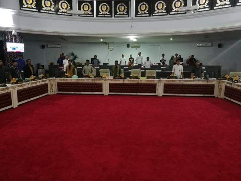 Rapat paripurna jawaban Bupati Kasman Lassa atas pandangan umum 8 fraksi di DPRD Donggala itu, nampak wakil ketua DPRD Donggala Sofyan Yotolembah (Fraksi Golkar) dan Abd Rasyid (Fraksi PKS), mendampingi ketua DPRD Asis Rauf (Fraksi Gerindra).