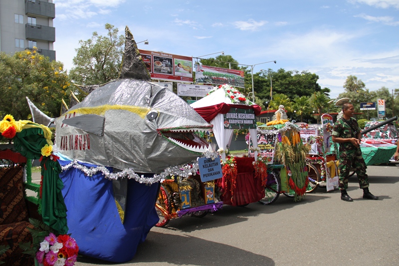 Bukan hanya Bupati Habsi, tapi sejumlah kepala OPD turut pula melakukan kegiatan yang tidak biasa tersebut dengan mengelilingi sejumlah ruas jalan di sekitar tempat kegiatan. Tercatat sekitar 40 becak hias yang disiapkan oleh masing-masing OPD lingkup pemkab Mamuju meramaikan kegiatan tersebut.