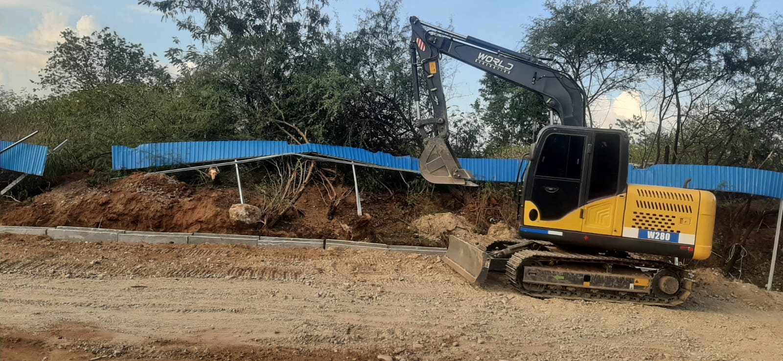 Pagar yang terbuat dari cor beton, baja ringan dan seng multi roof itu terbongkar akibat galian alat berat (exacavator) untuk pemasangan U Ditch.