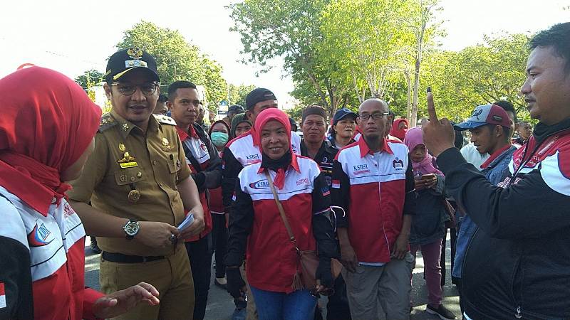 Ilong (deadline-news.com)-Palusulteng-Wakil Wali kota Palu Sigit Purnomo Said, S.AP saat menerima para pendemo yang tergabung dalam Gerakan Buruh Bersatu “Gerak Bursa” di halaman kantor Wali kota Palu Senin (20/1-2020).