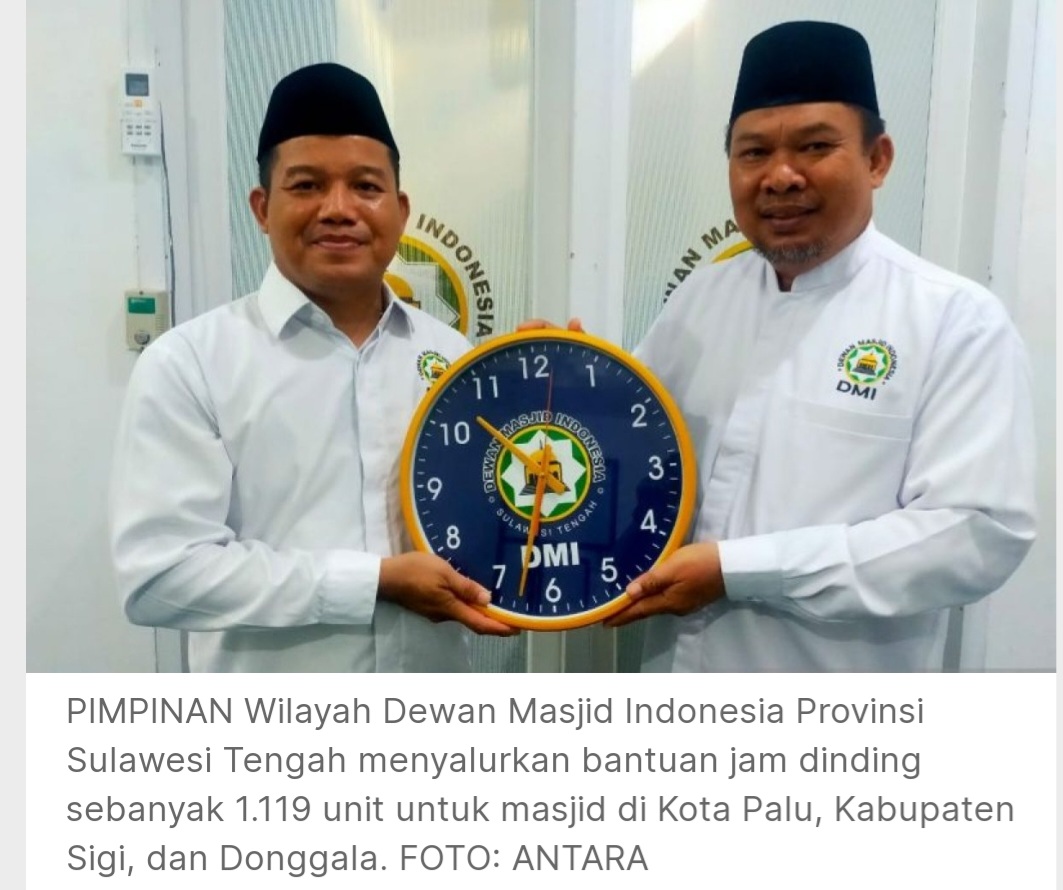 Antasena (deadline-news.com)-Palu-Pimpinan Wilayah Dewan Masjid Indonesia (PW DMI) Provinsi Sulawesi Tengah menyalurkan bantuan jam dinding sebanyak 1.119 unit untuk masjid di wilayah Kota Palu, Kabupaten Sigi dan Donggala (Pasigala).