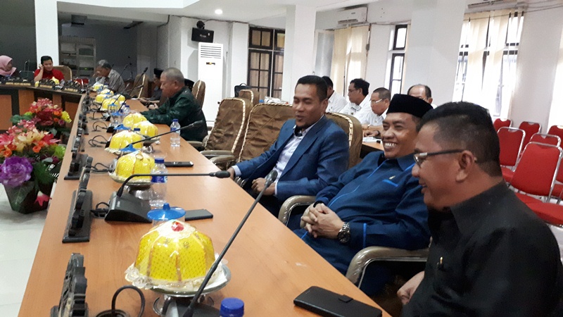 foto suasana jelang rapat paripura RAPBD 2019 di Dekota Palu. Nampak M.Iqbal Andi Magga, SH, M.H bersama M.Room, SH, MH (F.Golkar). foto Bang Doel/deadline-news.com