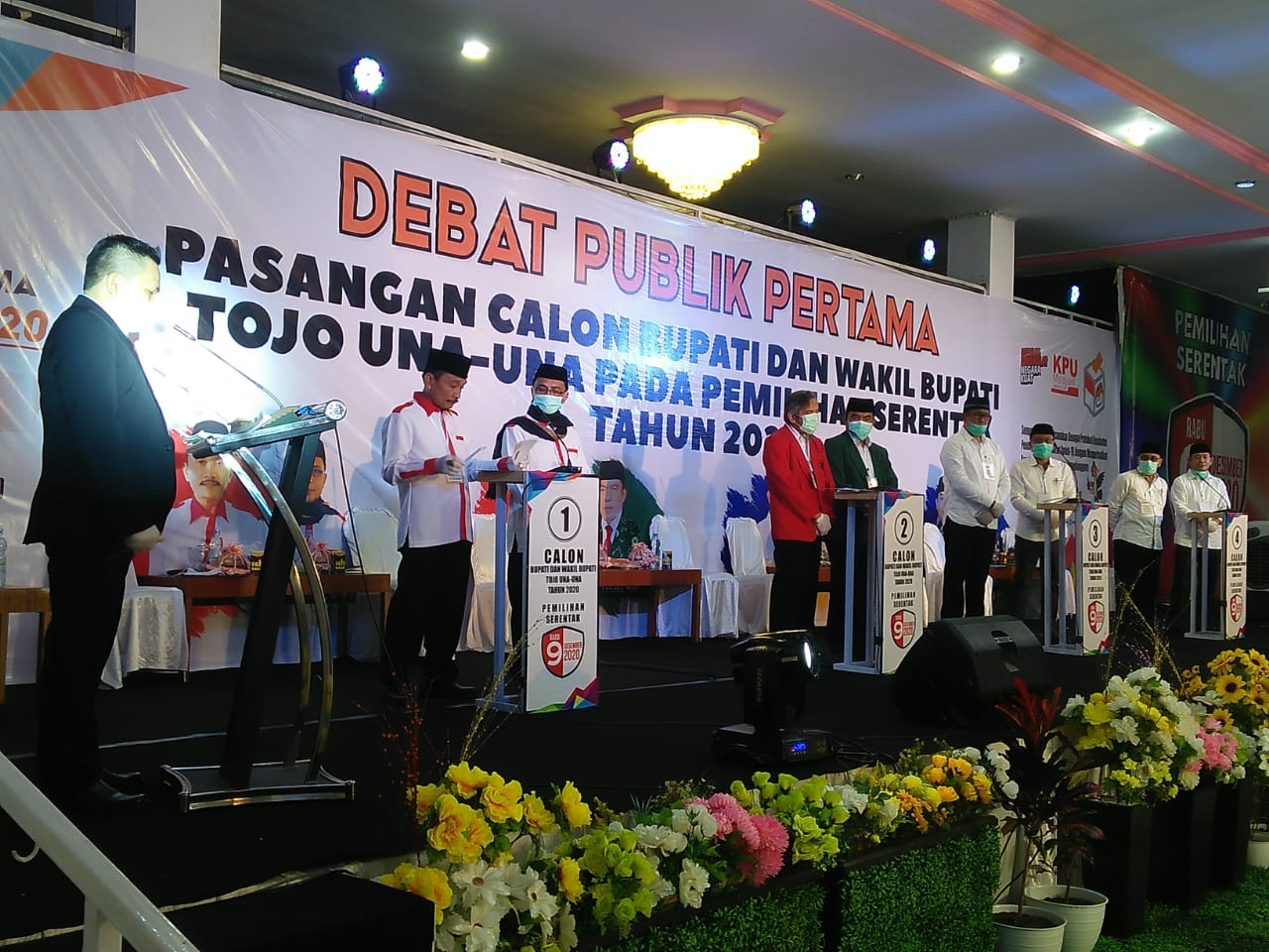 Syamsul Bahri M. Kasim (deadline-news. Com)-Empat pangan calon kepala daerah (Cakada) Kabupaten Tojo Una-Una 2020 mengikuti debat publik yang digelar Komisi Pemilihan Umum (KPU) Sabtu (17/10-2020) di Ampana.