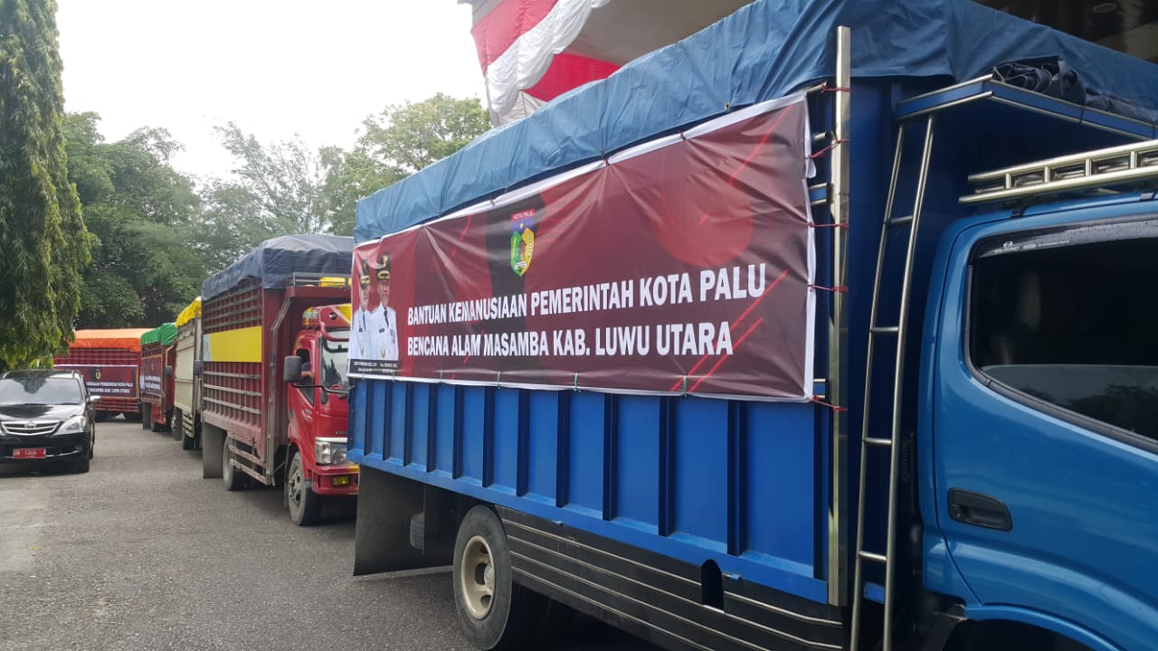Ilong (deadline-news.com)-Palusulteng-Wali Kota Palu diwakili Sekretaris Daerah Kota Palu, H Asri SH secara simbolis melepas bantuan kemanusiaan untuk korban bencana banjir di Masamba, Kabupaten Luwu Utara, Sulawesi Selatan.
