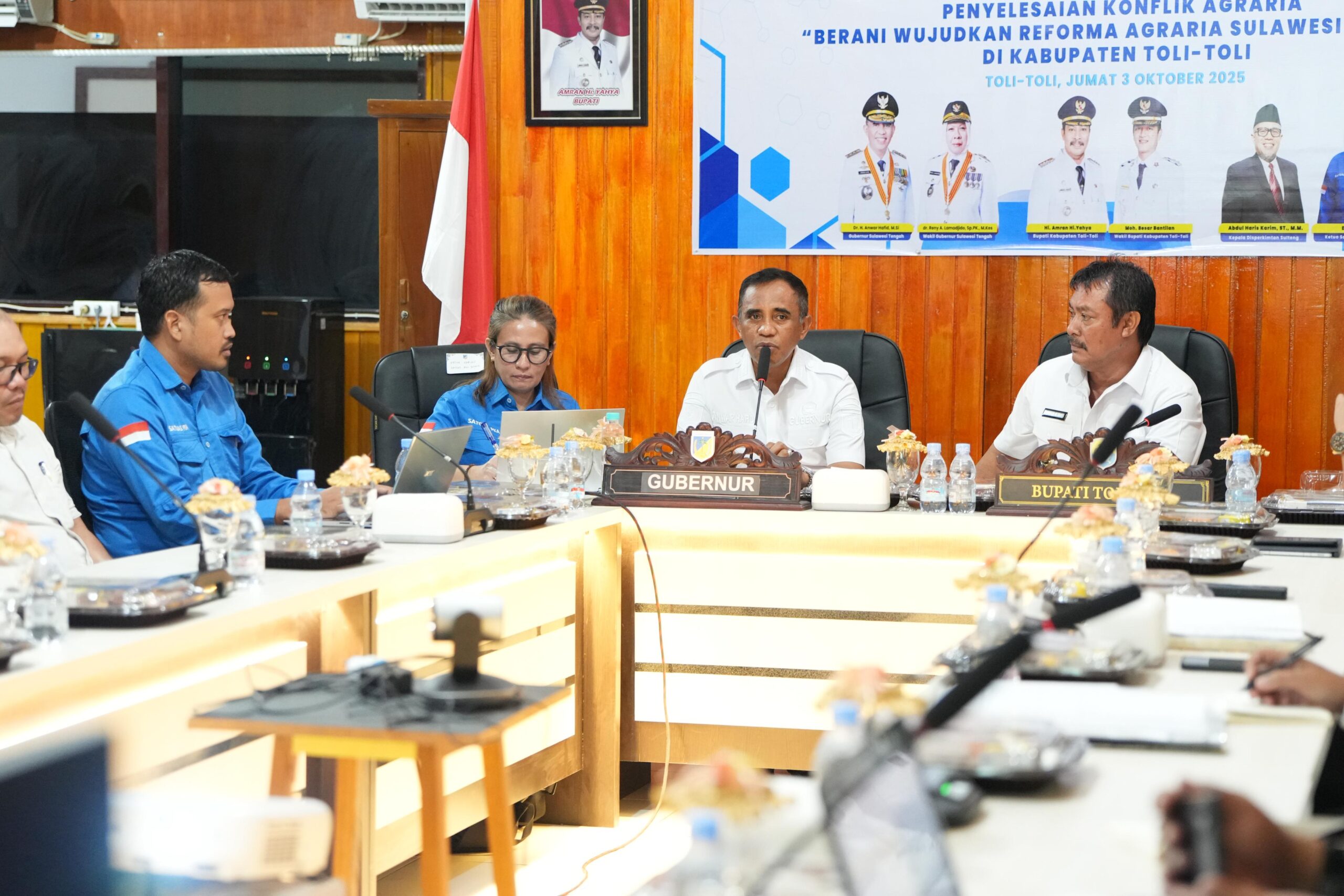 Stefi (deadline-news.com)-Tolitoli-Gubernur Sulawesi Tengah, H. Anwar Hafid, memimpin langsung rapat penyelesaian konflik agraria di Kabupaten Tolitoli, Jumat (3/10-2025).