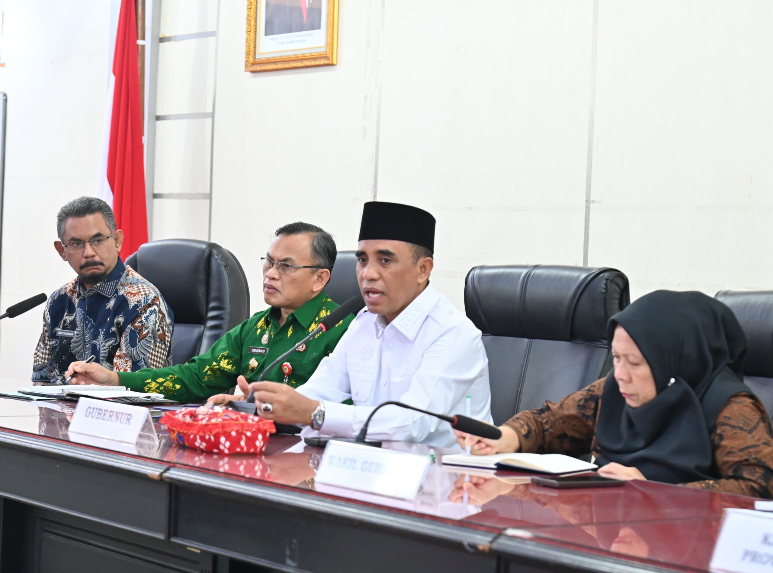 Rapat dihadiri Wagub dr. Reny A. Lamadjido, Sp.PK., M.Kes, Asisten Perekonomian dan Pembangunan Dr. Rudi Dewanto, S.E., M.M., Kepala Dinas Penanaman Modal Daerah dan PTSP Moh. Rifani Pakamundi, S.Sos, M.Si, Kadis Kehutanan Muhamad Neng, S.T., M.M, Kadis Lingkungan Hidup Dr. Yopie M.I. Patiro, S.H., M.H dan Plt Kadis Energi dan Sumber Daya Mineral Eddy N. Lesnussa, S.Sos.