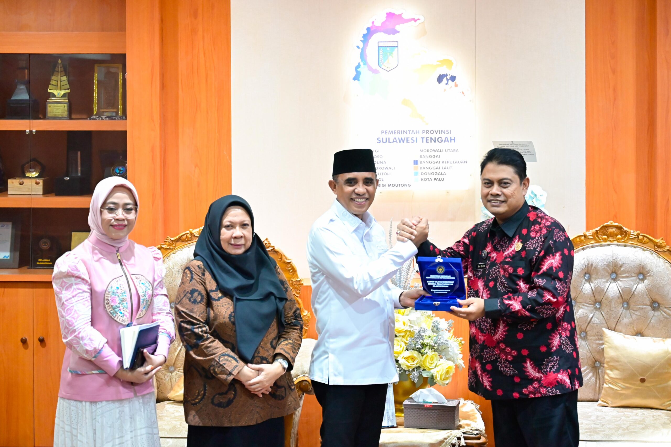 Aqsa (deadline-news.com) – Palu – Gubernur Sulawesi Tengah Dr.Anwar Hafid,M.Si dan Wakil Gubernur Sulawesi Tengah dr.Reny A. Lamadjido, Sp.PK, M.Kes menerima kunjungan silaturahmi Kepala Kantor Wilayah (Kakanwil) Ditjen Pemasyarakatan Sulawesi Tengah Bagus Kurniawan beserta jajaran, di ruang kerja gubernur, pada Jum’at (14/3/2025).
