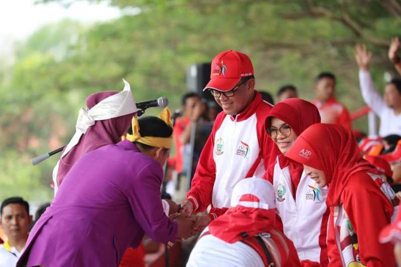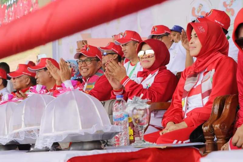 Foro warga menyalami Gubernur Nurdin Abdullah dan istrinya Ny.Hj.Listiaty Fachruddin disela-sela pembukaan Porda XVI di Pinrang. foto Dok Humas/deadline-news.com