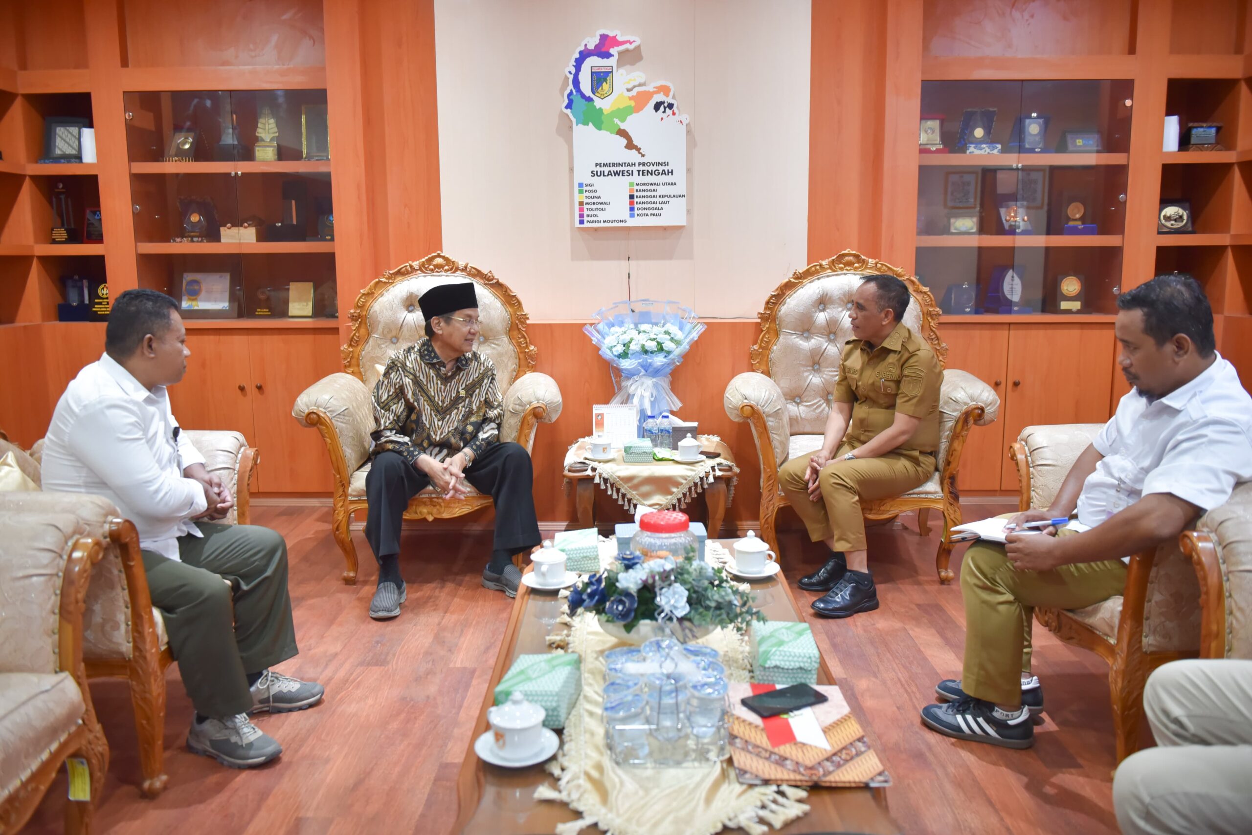 Bang Doel (deadline-news.com) – Palu – Gubernur Sulawesi Tengah Dr.H.Anwar Hafid,M.Si menerima kunjungan kerja Komisi II Dewan Perwakilan Rakyat Republik Indonesia (DPR RI) Drs.H.Longki Djanggola,M.Si dalam rangka Masa Reses di Sulteng, bertempat di ruang kerja gubernur, pada Selasa (15/4/2025).