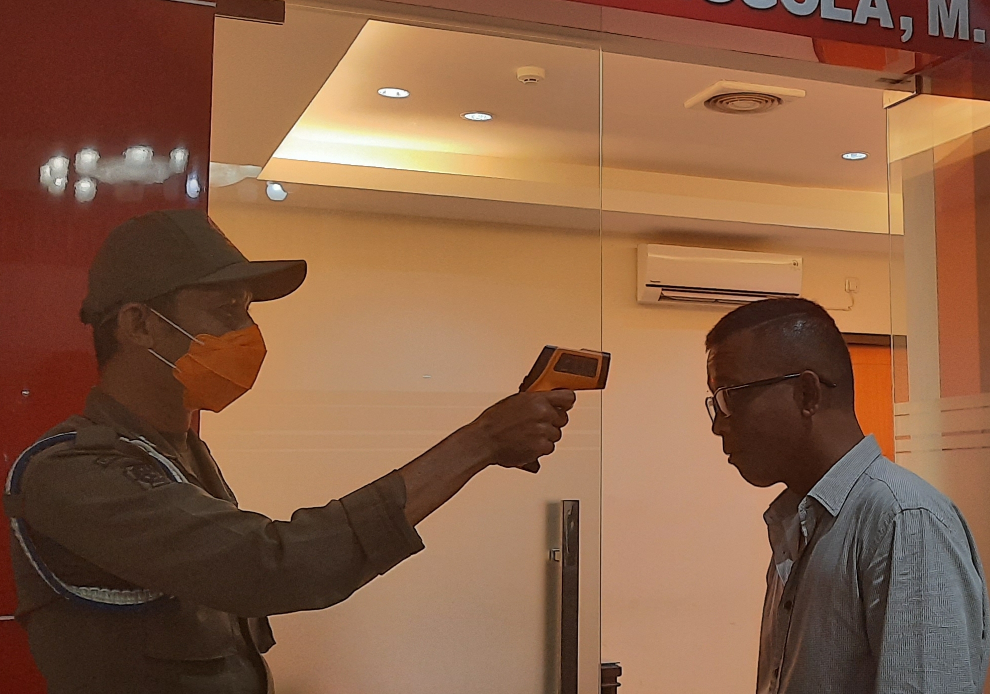 “Jika suhu badan mencapai 37 derajad celsius lebih maka disarankan untuk memeriksakan diri ke rumah sakit untuk menghindari gejala-gejala virus corona,”kata Riyan petugas piket di depan ruangan Gubernur Longki Djanggola.