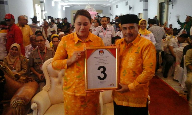 Sementara Vera-Taufik menggunakan setelan motif batik Donggala berwarna kuning. Sementara itu diluar gedung para pendukun atau masa para calon bergemuruh meneriakan pendukun masing-masing. Pasangan nomor urut 01 ibu dkter Anita dan pasanganya abdul Rahman disambut oleh pendukunya dan meneriakan nomor 1 pasti menang sambil berjalan dengan mengunakan kendaraan meninggalakan gedung.