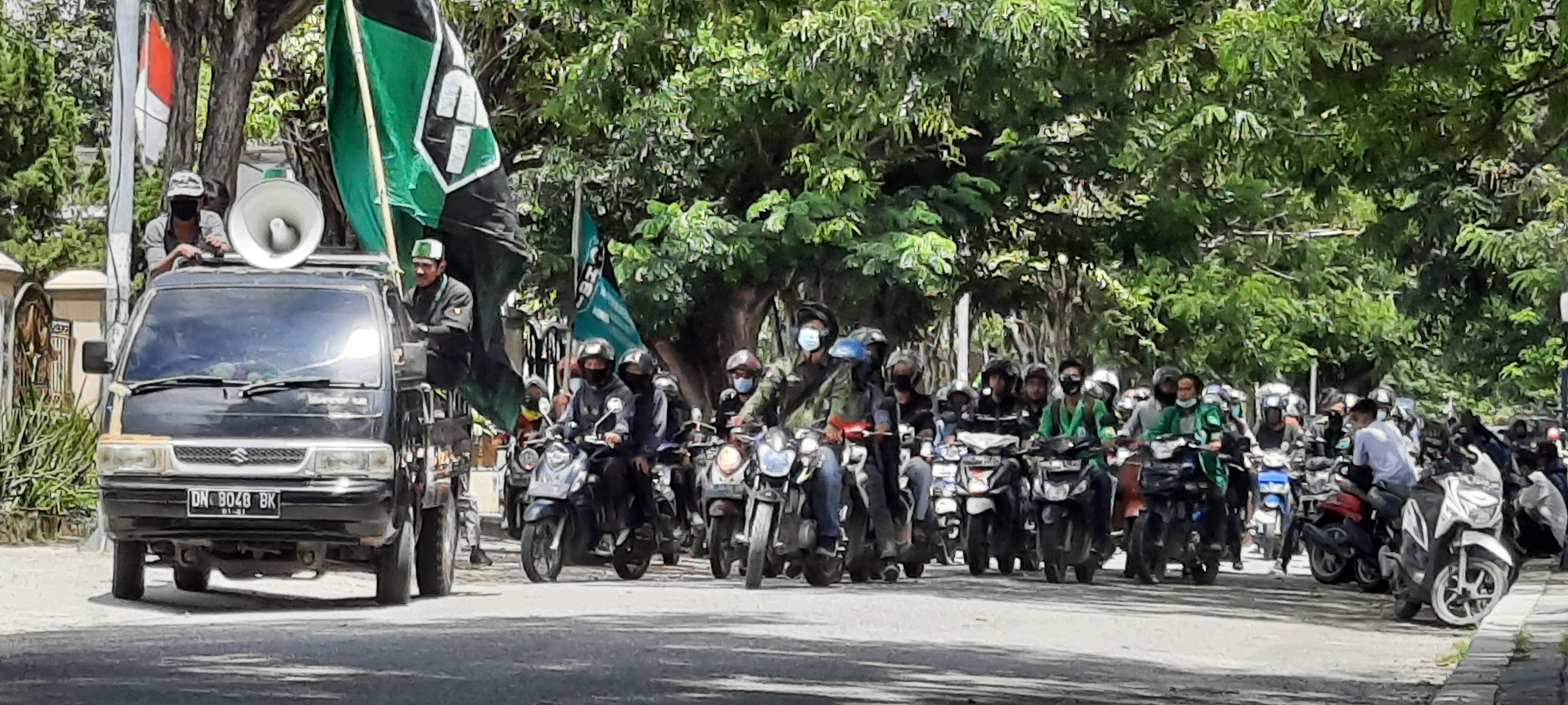Nanang (deadline-news.com)-Palusulteng-Ratusan Himpunan Mahasiswa Islam (HMI), Cabang Palu kembali unjuk rasa (Unras ), Senin (12/10-2020) di jalan Samratulangi sekitar pukul 13.13 wita.
