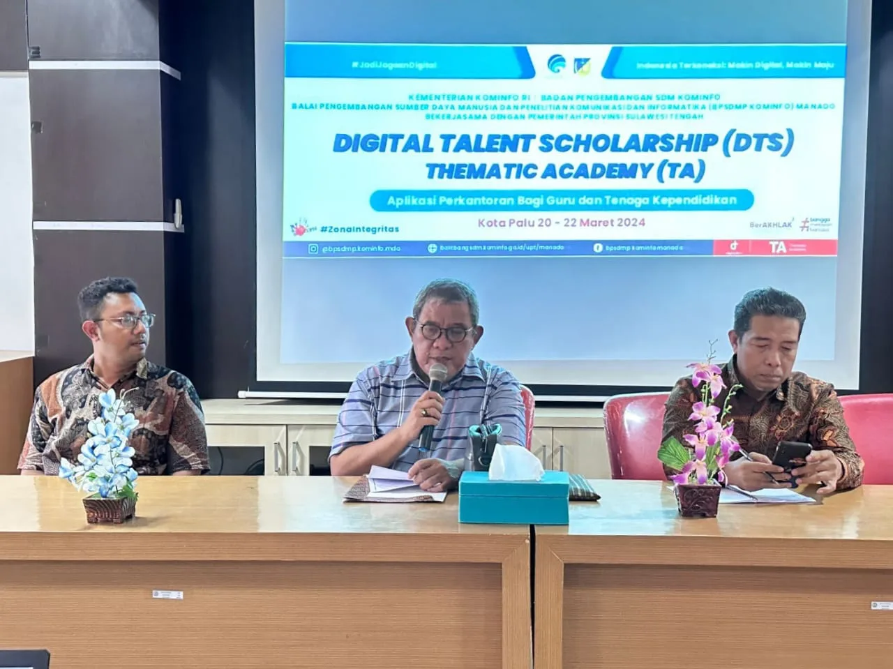 Antasena (deadline-news.com)-Palu-Gubernur Sulawesi Tengah diwakili Kepala Dinas Komunikasi, Informatika, Persandian dan Statistik (kominfo Santik) Provinsi Sulawesi Tengah Drs Sudaryano R. Lamangkona, M.Si menutup secara resmi Pelatihan Digital Talent Scholarship (DTS) Thematic Academy (TA) yang diinisiasi Balai Pengembangan Sumber Daya Manusia dan Penelitian Komunikasi dan Informatika (BPSDMP Kominfo) Manado.