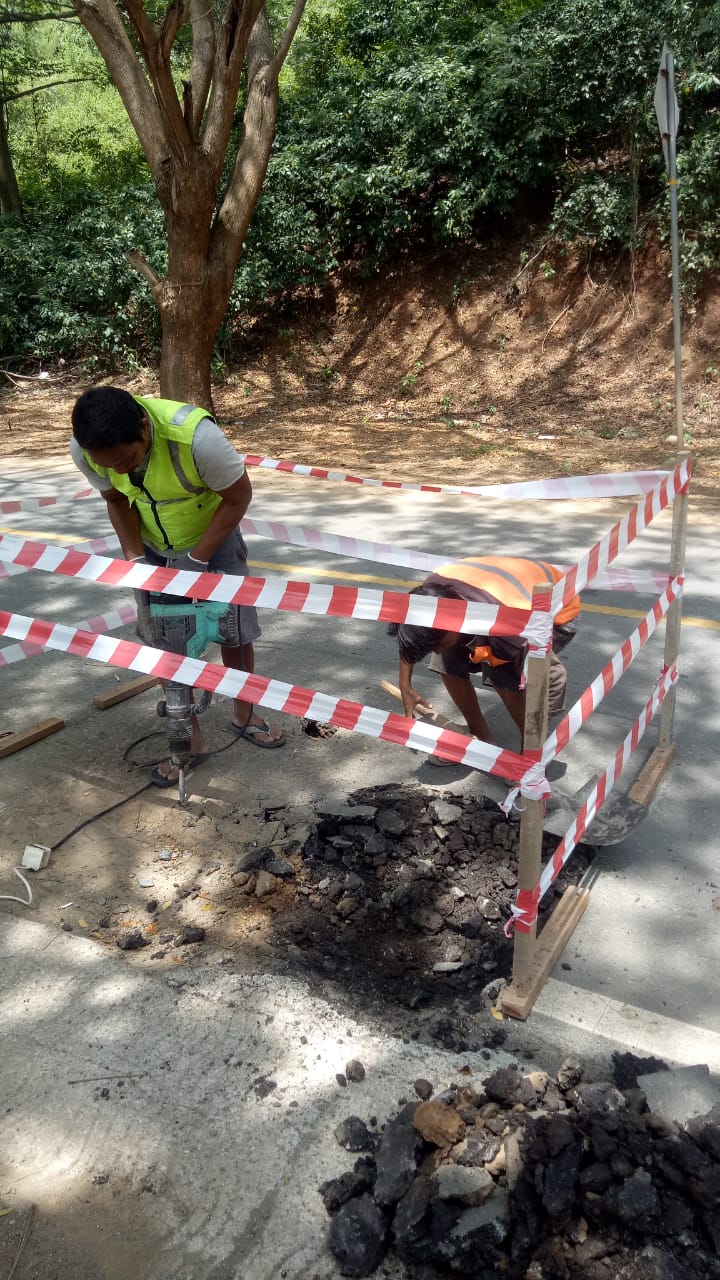 Hanya saja titik – titik yang berlubang-lubang dan sempat ditanami batang kayu itu, ditempel dengan pemadatan saja, belum diaspal.