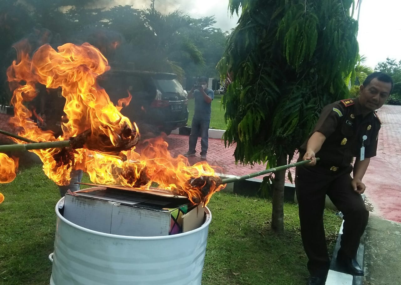 Kejari Suwirjo juga menjelaskan, babuk yang dimusnahkan hari ini, untuk tindak pidana narkotika yakni jenis sabu seberat 12.1,56 gram, alat hisap, tas termasuk sejumlah handpone,