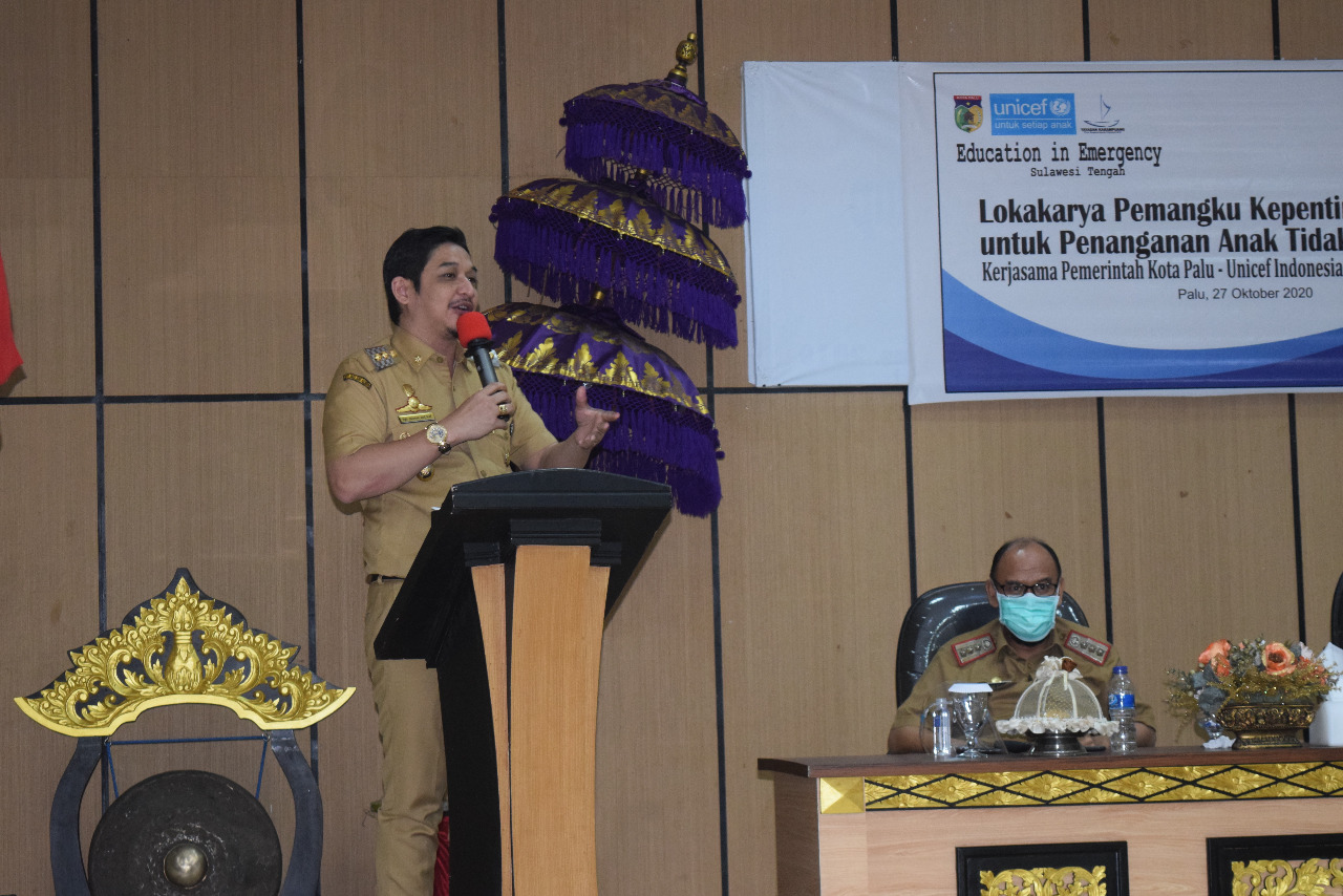 Ilong (deadline-news.com)-Palusulteng-Plt. Wali kota Palu, Sigit Purnomo Said, S.AP secara simbolis membuka Lokakarya Pemangku Kepentingan untuk Penanganan Anak Tidak Sekolah (ATS) di kota Palu pada Selasa (27/10-2020).