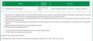 Sementara itu juru bicara Pengadilan Negeri Donggala yang dikonfirmasi via chat di whatsappnya membenarkan jika Naim, S.Sos telah divonis 1 tahun 4 bulan penjara (16) bulan.
