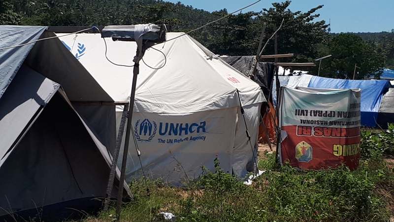 Ke dua lelaki itu duduk-duduk menyaksikan ibu-ibu yang sedang ngerumpi sambil cari kutu dibawah tenda. Mereka mengaku sudah 7 bulan di tenda-tenda itu. Mereka tidak lagi mendapatkan bantuan sembako seperti Beras, Minyak, Mie Instan, Air mineral, dan makanan lainnya.