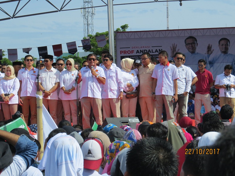 “Oleh karena itu mari kita satukan tekad, hati, fikiran untuk bersama-sama mendukung dan memenangkan pasangan Prof Andalan kita pada Pilgub 2018 – 2023 di Sulsel ini. Mengapa Gerindra menjatuhkan pilihannya untuk mengusung pasangan Prof NA – SS? Karena kita merasa bahwa mereka berdua mampu membawa Sulsel yang sudah maju lebih maju lagi dan jaya,”tandas Indris sembari mendapat aplaus dan gemuruh pekikan dari massa yang hadir “hidup Prof Andalan, Jayalah Suslselku.