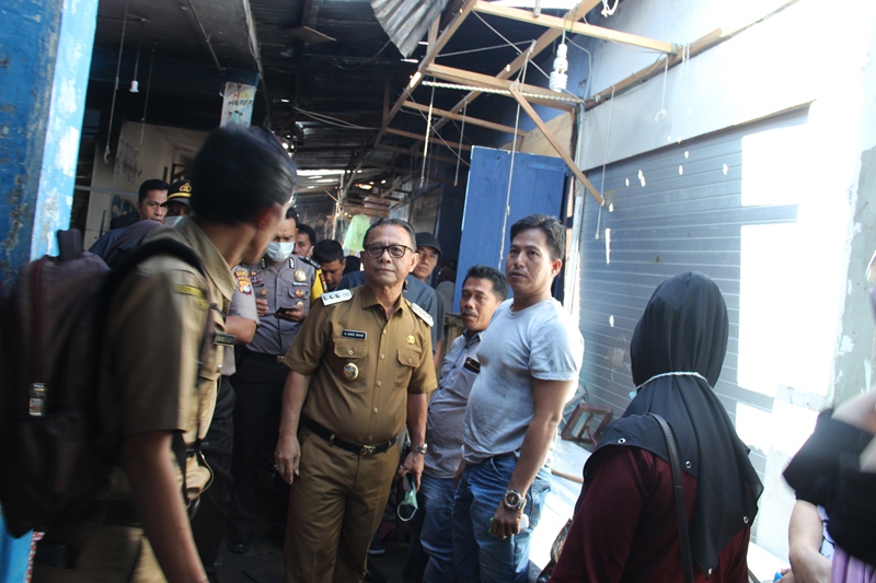 “Sekarang pelataran pasar ini akan di jadikan tempat relokasi mereka, sementara Dinas Perdagangan sedangmenginventarisir berapa korban dan kerugian juga mencoba memberikan ruang untuk para pedagang berjualan. Pemerintah Daerah juga akan secepatanya merenovasi pasar karena saya melihat kondisinya hanya bagian atap sementara temboknya masih sebagian utuh dan tentu kita akan memberikan solusi dulu, pasti Pemerintah akan memberikan perhatian,”pungkasnya.