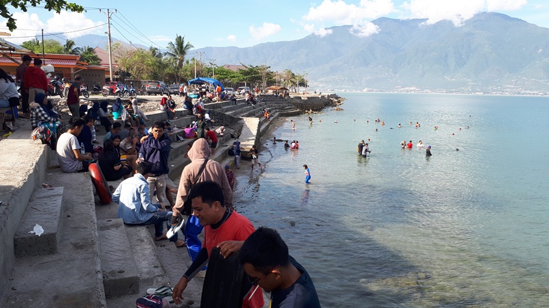 Pantai Talise tepatnya dibelakang Polsek Palu Timur mulai ramai dikunjungi warga. Mereka mandi-mandi, berenang, dan bersenda gurau sambil menikmati jajanan khas Palu yakni putu yang terbuat dari beras ketan hitam dan putih.
