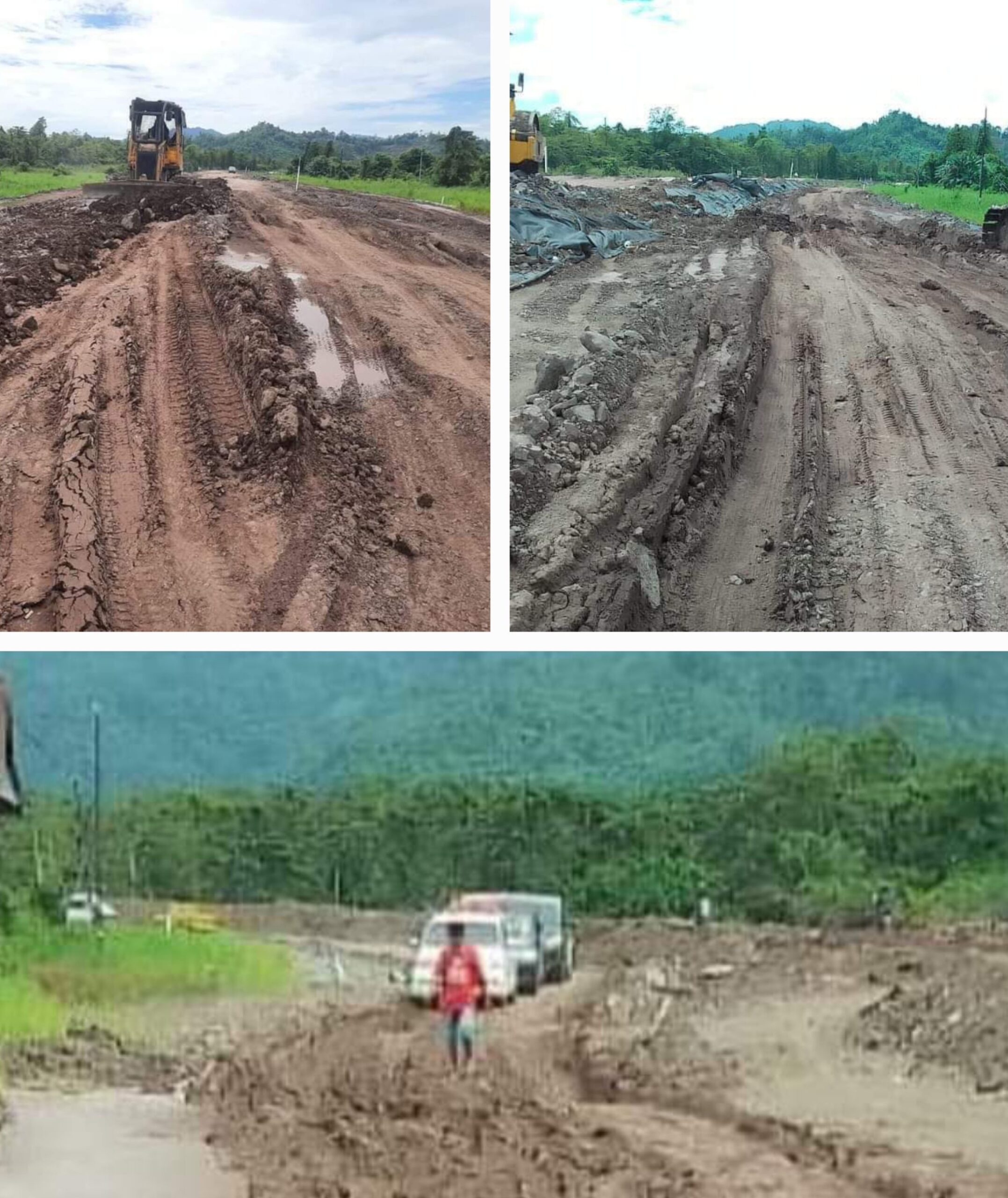 “Ini segmen bambuan , lagi tahap penimbunan untuk peninggian dengan metode preloading, namun karena cuaca hujan dan banjir sehingga berlumpur, dan sedang di perbaiki tks,”kata Kabalai BPJN Dadi Murdadi.