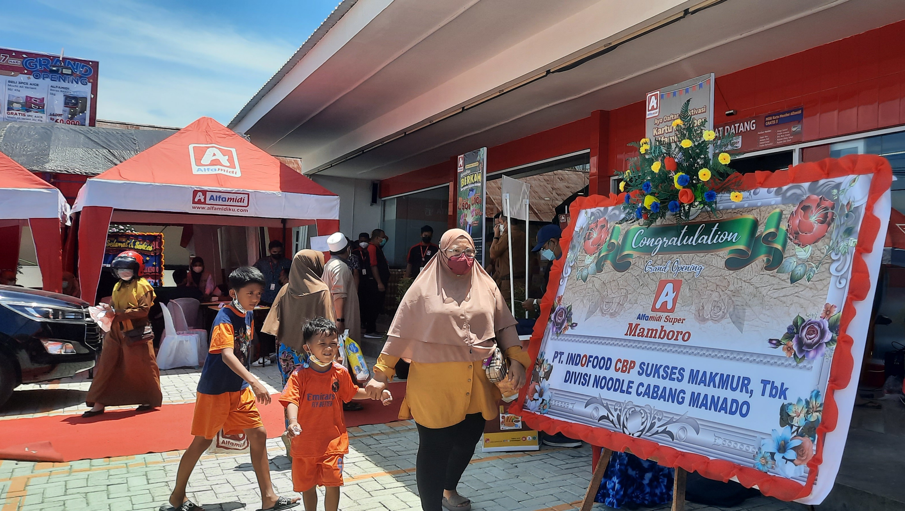 Pada pembukaan Alfamidi Super Mamboro itu, anak panti suhan, kaum dhuafa dan pemulung juga disiapkan bingkisan sembako.