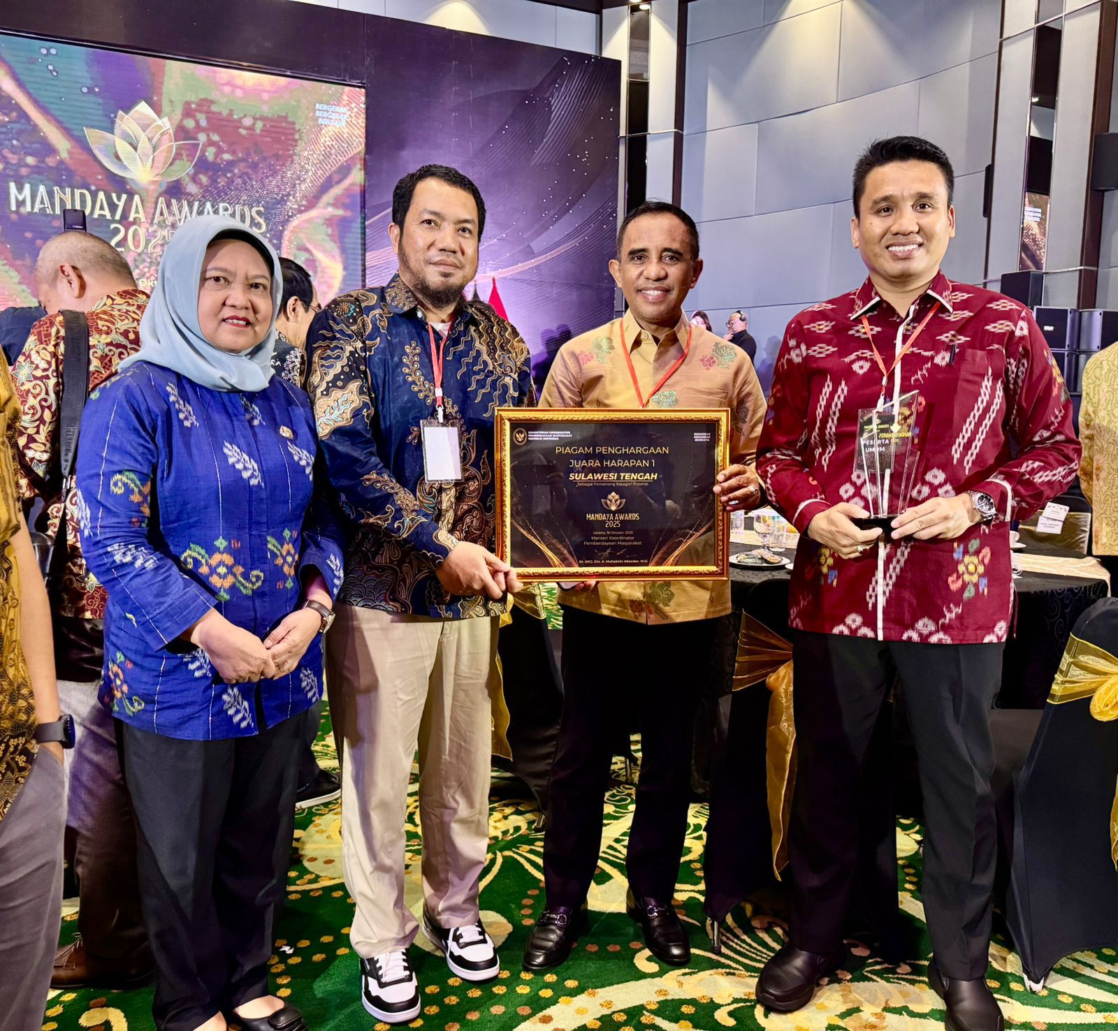 Stefi (deadline-news.com)-Jakarta-Gubernur Sulawesi Tengah, Anwar Hafid (AH) menerima Mandaya Awards dari Kementerian Koordinator Bidang Pemberdayaan Masyarakat.