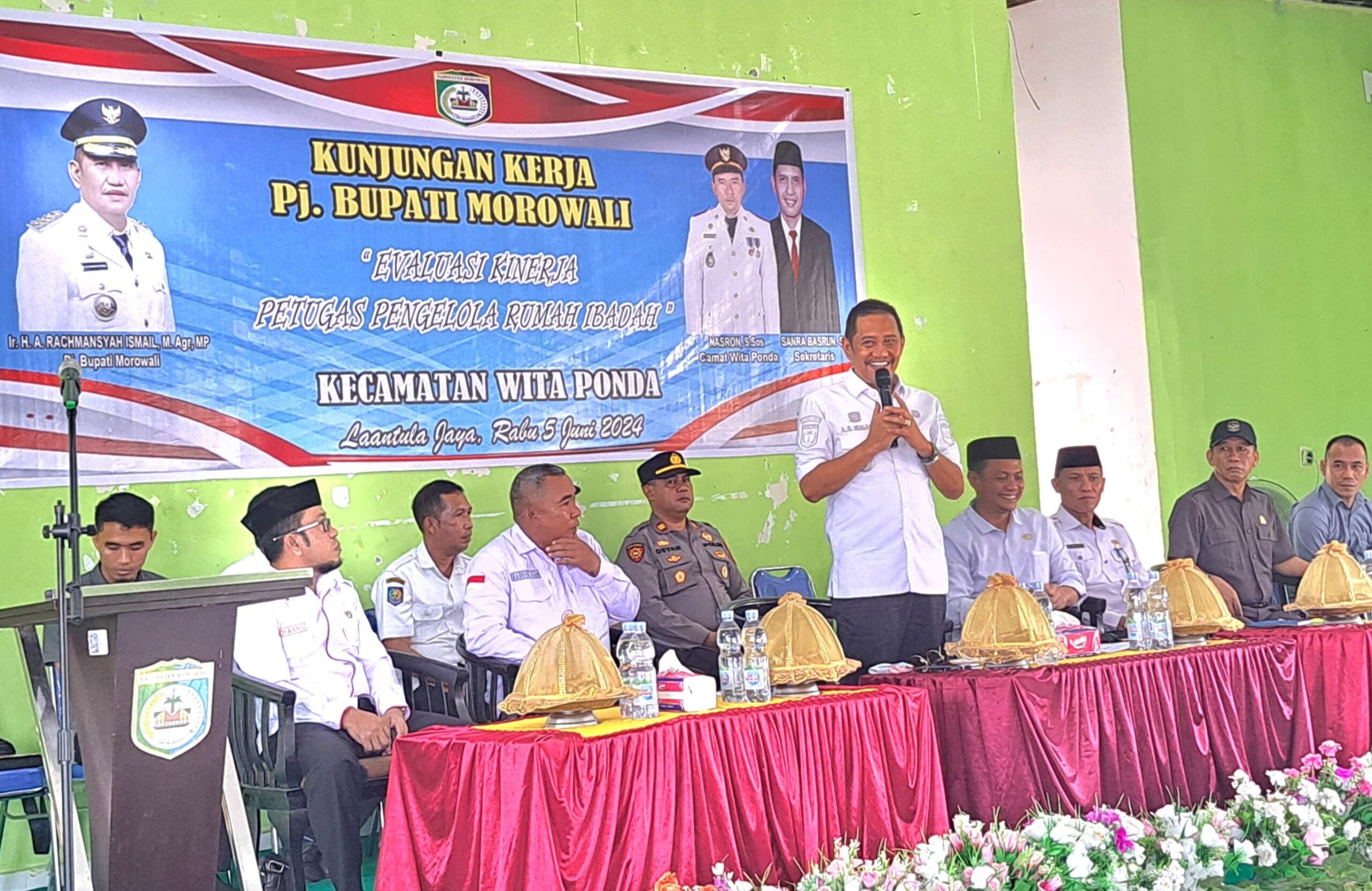 Bang Doel (deadline-news.com)-Morowali-Penjabat (Pj) Bupati Morowali, Provinsi Sulawesi Tengah, Ir. H. A. Rachmansyah Ismail, M.Agr., M.P, didampingi Asisten Bidang Ekonomi dan Pembangunan, Abdul Muttaqin Sonaru, SP, Staf Ahli Bidang Kesra, Abd. Malik Hafid, S.H.I., M.Si, Staf Ahli Bidang Hukum, Politik, dan Kemasyarakatan, Drs. Ichwan Bachmid, Kepala Bappelitbangda, Hasyim, S.P, Plt. Kadis Perumahan dan sejumlah pejabat eselon III lainnya, menggelar kunjungan kerja (Kunker) di Kecamatan Witaponda dan Kecamatan Bumi Raya pada Rabu (5/6/-2024).