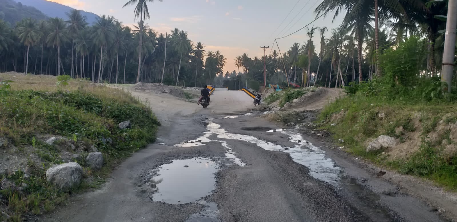 Mulai dari tapal batas ibu kota provinsi atau jalur utama arah dari kota Palu ke arah jalan poros Palu Bangga itu, tampak terlihat bagian di benerapa titik ruas jalan itu rusak parah.