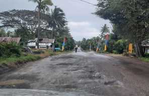Makanya dibadan jalan sudah tidak ada aspal dan berlubang-lubang, sehingga tidak ada lagi tempat menghindar. Karena semua berlubang-lubang mengangah dan digenangi air bagaikan kubangan kerbau.