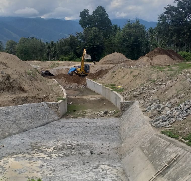 Nelwan (Deadline news.com)-Sigi Sulteng-Rehabilitasi bendung Gumbasa dan kontraksi groundsill dan normalisasi penanggulangan bencana sungai Gumbasa di Desa Pandere kecamatan Gumbasa Sigi bobotnya sudah mencapai 39% (Persen).