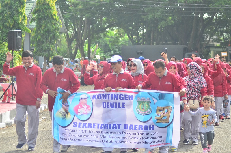 Pembukaan Porseni dipusatkan di halaman kantor Bupati Pinrang, Kamis (7/2-2019), ditandai defile ratusan kontingen, Porseni dibuka Bupati Pinrang Andi Aslam Patonangi.