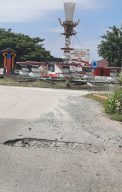 Dan ruas jalan yang sangat parah disisi kanan dari arah Palu, tepatnya tidak jauh dari lapangan kota Donggala terdapat 3 lubang yang mengangah (Amblas).