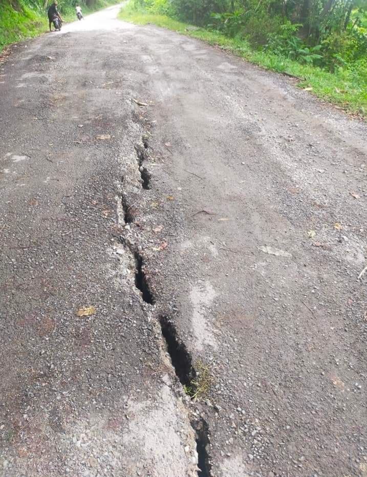 Menurutnya ruas jalan yang terbelah ditengah-tengahnya itu akan terpisah jika tiba-tiba amblas. Olehnya perlu penanganan segera.