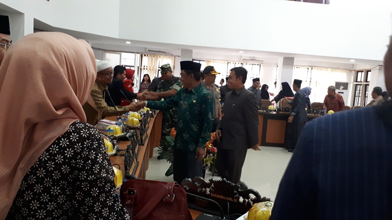 foto Sekot Palu Asri, SH jabat salam dengan anggota DPRD Kota Palu usai sidang paripurna akhir dan awal tahun 2019. foto Nanang Jum’at (4/1-2019).