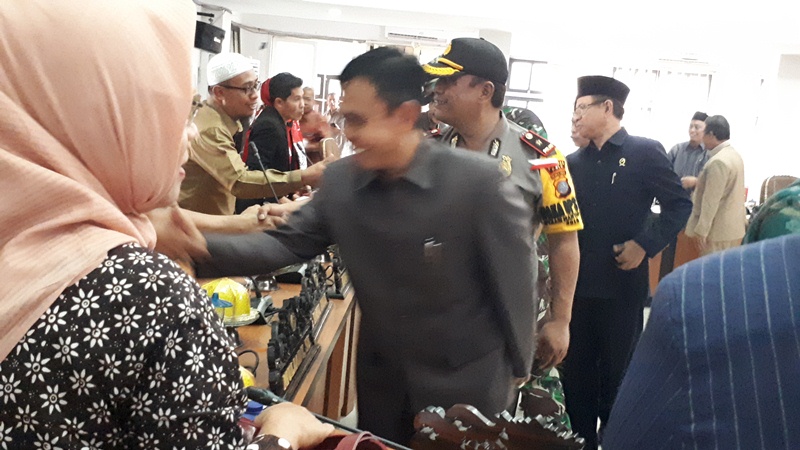 foto jabat tangan forkompinda kota Palu dengan anggota Dekot Palu usai sidang Jum’at (4/1-2019). foto Nanang/deadline-news.com