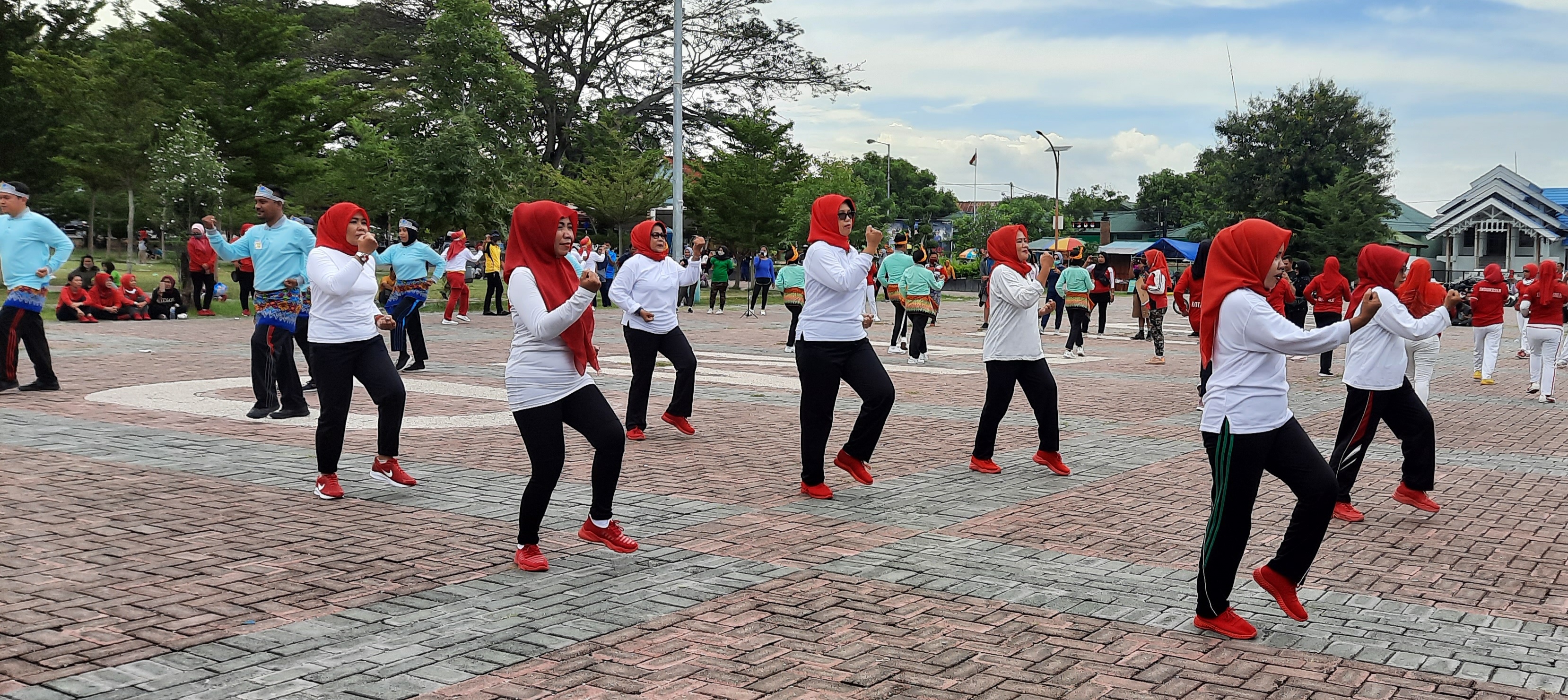 Andi Attas Abdullah (deadline-news.com)-Palusulteng-Sebagai upaya tingkatkan imun dan melawan penyebaran covid19, Dinas Pemuda dan Olahraga (Dispora) Kota Palu menggelar lomba senam.