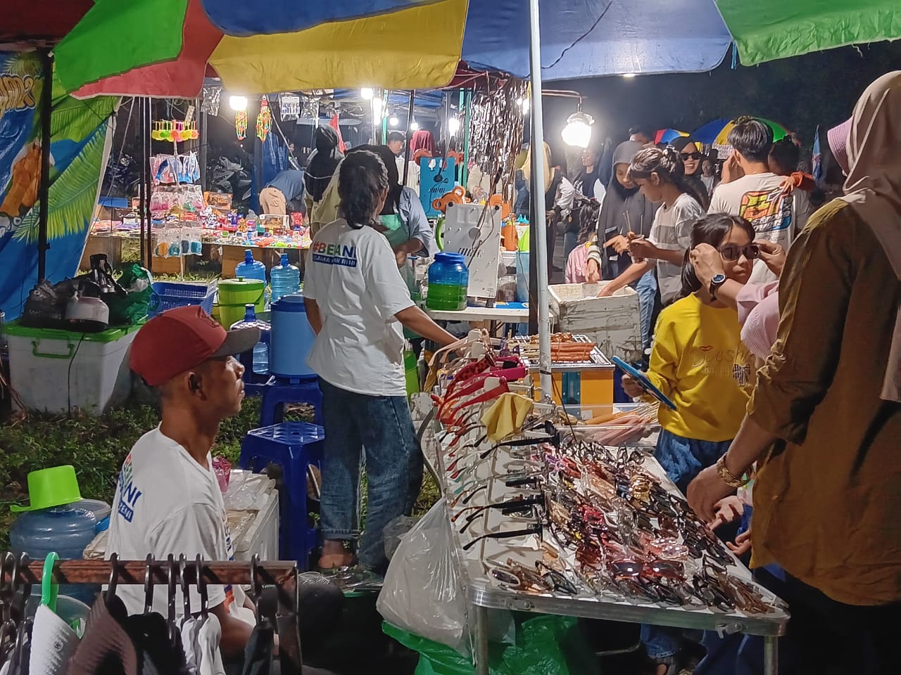 “Jadi untuk lampu menerangan kami tinggal berbagi dengan pedagang lain, karena sudah dibantu dengan panitia,” ungkapnya lagi.