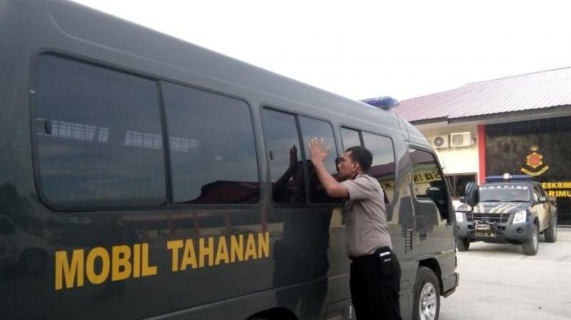 Sepulang dari sidang, 25 tahanan seluruhnya naik dan kembali ke mobil tahanan.
