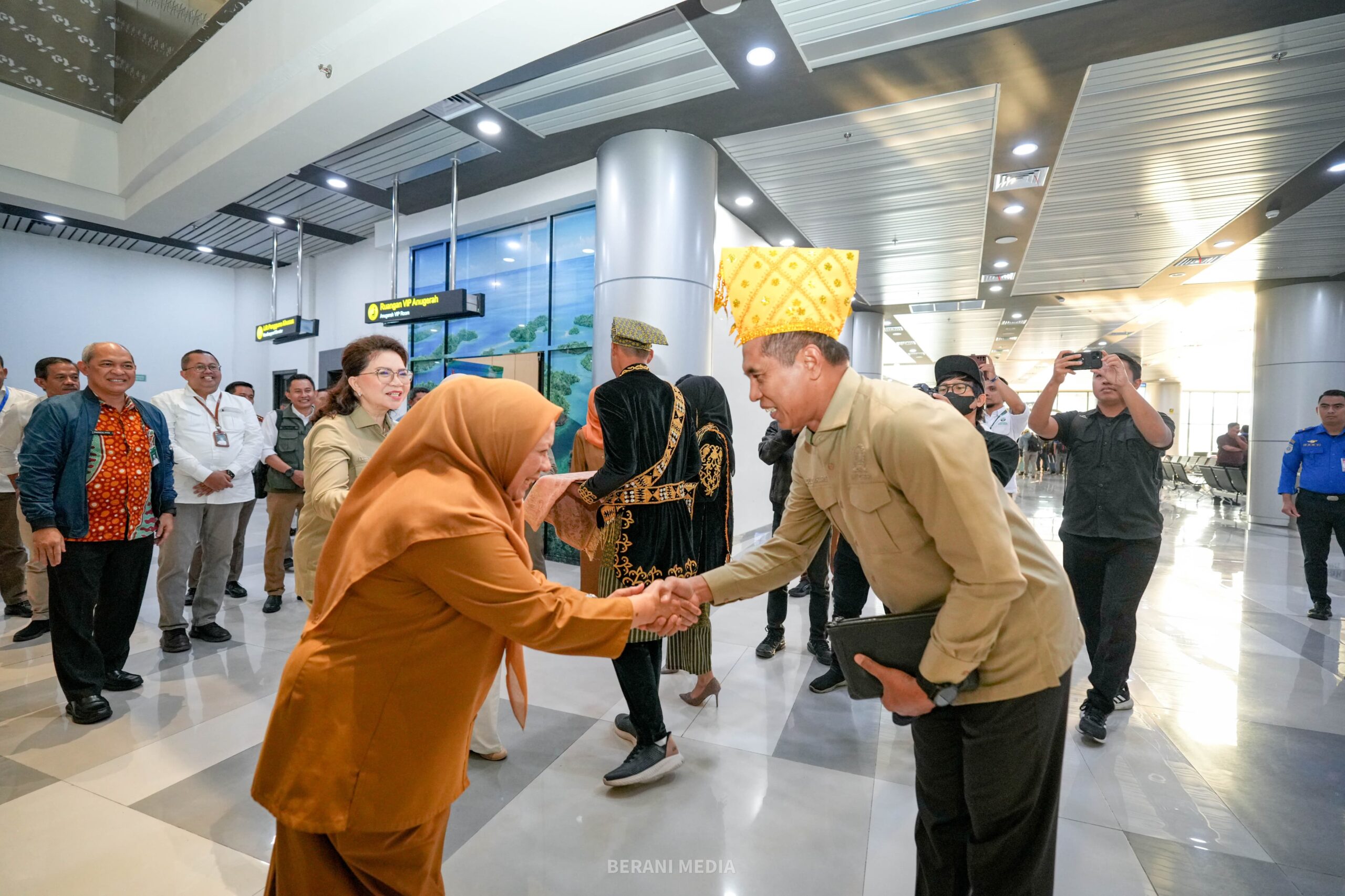 Usai prosesi adat, rombongan melanjutkan kegiatan ke ruang VIP bandara untuk bersilaturahmi bersama unsur Forum Koordinasi Pimpinan Daerah (Forkopimda) Sulawesi Tengah serta sejumlah pejabat terkait.