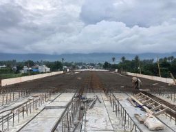“Sementara pemasangan Gelagar dengan bentangan 50 dan berat 100 Ton yang terpasangan sebanyak 8 batang sudah selesai, itu merupakan pekerjaaan tersulit dalam Pembuatan jembatan ini, kurangnya tenaga kerja diakibatkan tidak adanya transportasi udara saat pandemi merupakan kendala utama karena tenaga kerja yang digunakan untuk memasang dan mengoperasikan peralatan (Louncer dan crane semuanya adalah tenaga kerja dari jawa (PT. WIKA),”ujar Taufik.